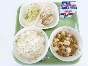 牛乳 ご飯 焼きぎょうざ(小:2個) バンサンスー 麻婆豆腐