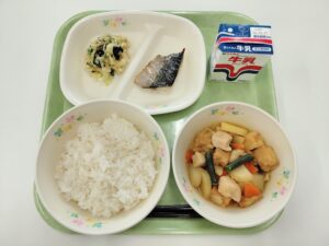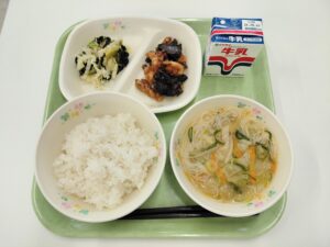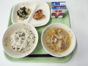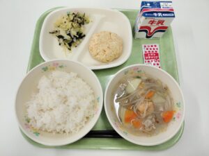 牛乳 ご飯 さけのちゃんちゃん焼き おかか和え 肉団子汁