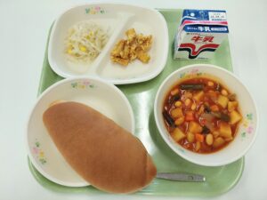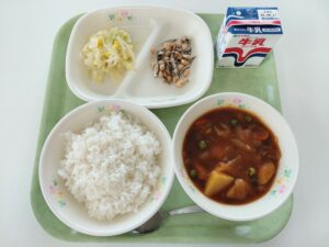 牛乳 カレーライス 大豆いりこ レモンサラダ